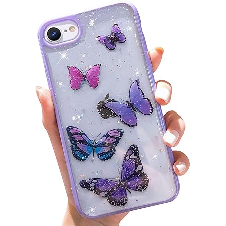 Compatible with iPhone 6/6s Case for Women Girls,Bling Glitter Silicone Bumper Cover Cute Blue Butterfly Sparkle Stars Design Clear Soft TPU Case for ...